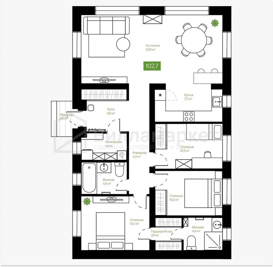 102,7 м2