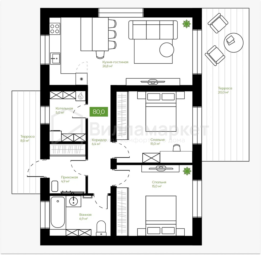 Терраса — это место, где вы можете наслаждаться солнечными днями, свежим воздухом и прекрасными видами, не покидая своего дома. Обустройте свою террасу и превратите ее в уютный уголок для отдыха и общения.